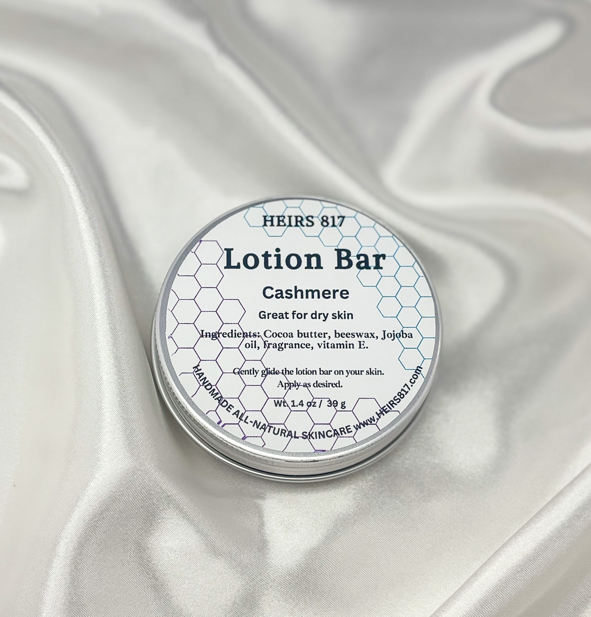 Cashmere is a solid lotion bar made with beeswax, jojoba oil and cocoa butter. This wonderfully nourishing and moisturizing lotion bar will protect and hydrate your skin during cold and dry weather. It helps with dry and cracked skin.